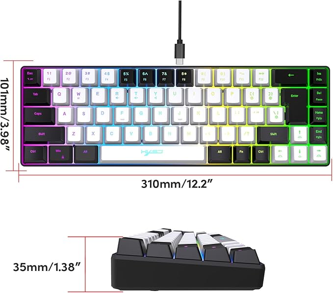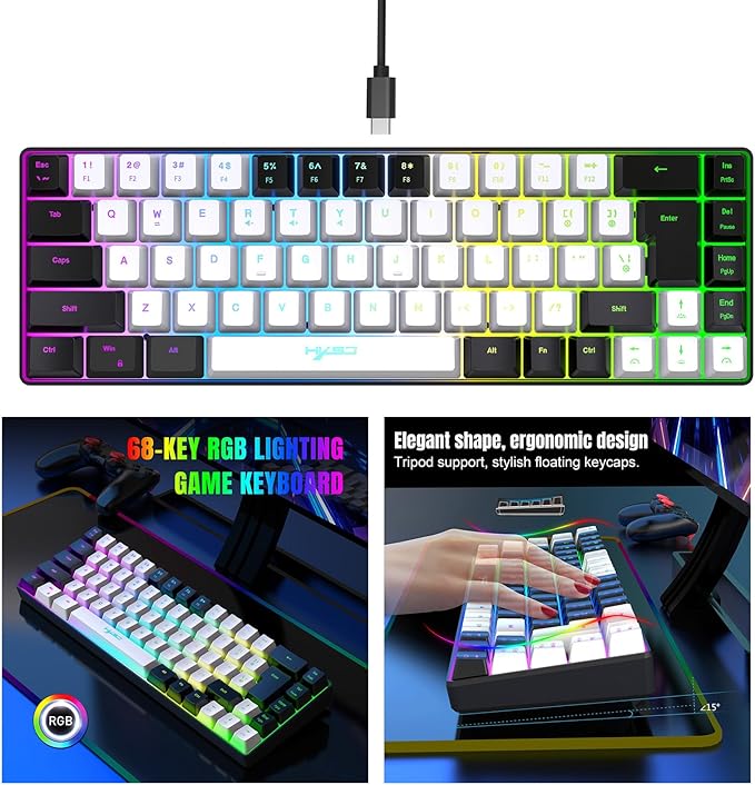 المميزات: 🔹 مفاتيح ميكانيكية لاستجابة سريعة ودقيقة 🔹 68 مفتاح بتصميم صغير موفر للمساحة 🌈 إضاءة RGB مع تأثيرات قابلة للتخصيص ⌨️ مضادة للظلال – تسجيل جميع ضغطات المفاتيح بدقة الاستخدام: 🎮 مثالية للألعاب ✍️ مناسبة للكتابة 🏢 استخدام مكتبي عملي